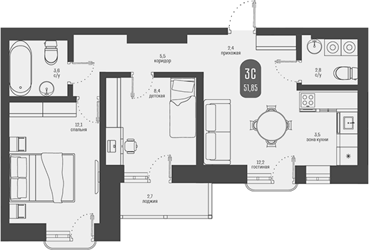 Площадь от 51.85 м2