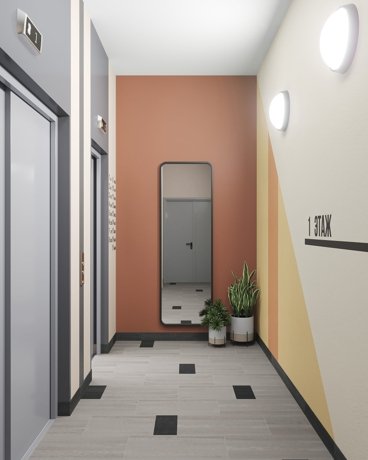 В подъездах ЖК RETROcity предусмотрена дизайнерская отделка в ретро-стиле. В доме 7 подъездов, в каждом установлено по два лифта: грузовой и пассажирский.