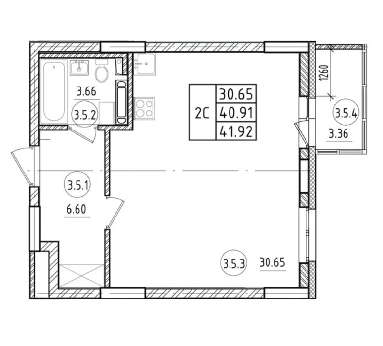 Площадь от 41.1 м2