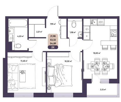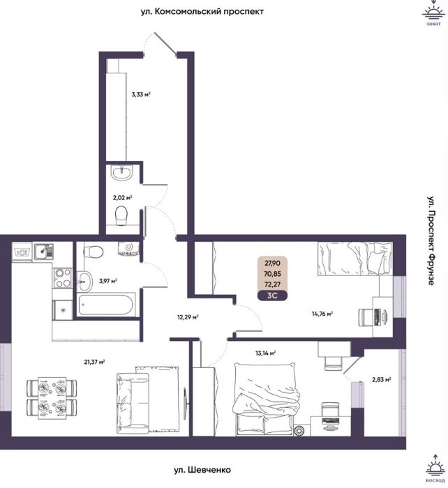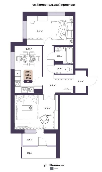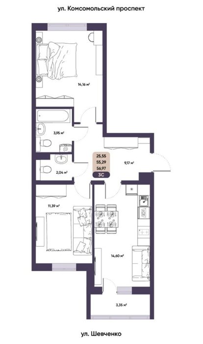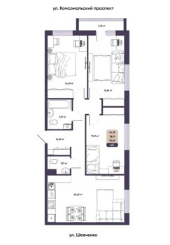 Площадь от 56.9 м2