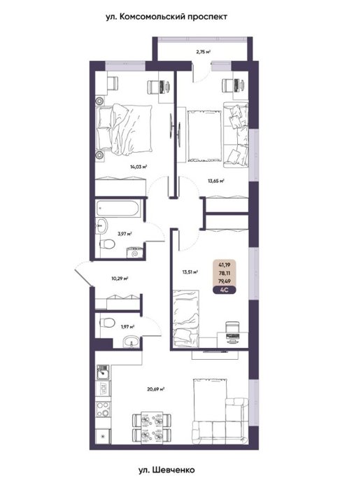 Площадь от 79.49 м2