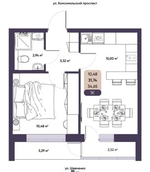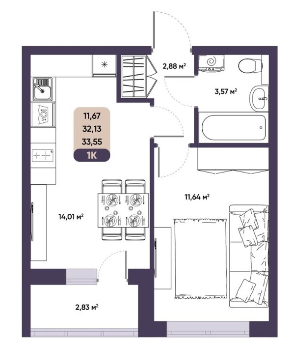 Площадь от 33.55 м2