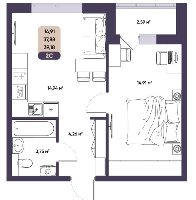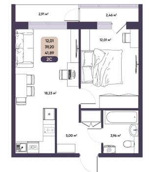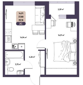 Площадь от 39.18 м2